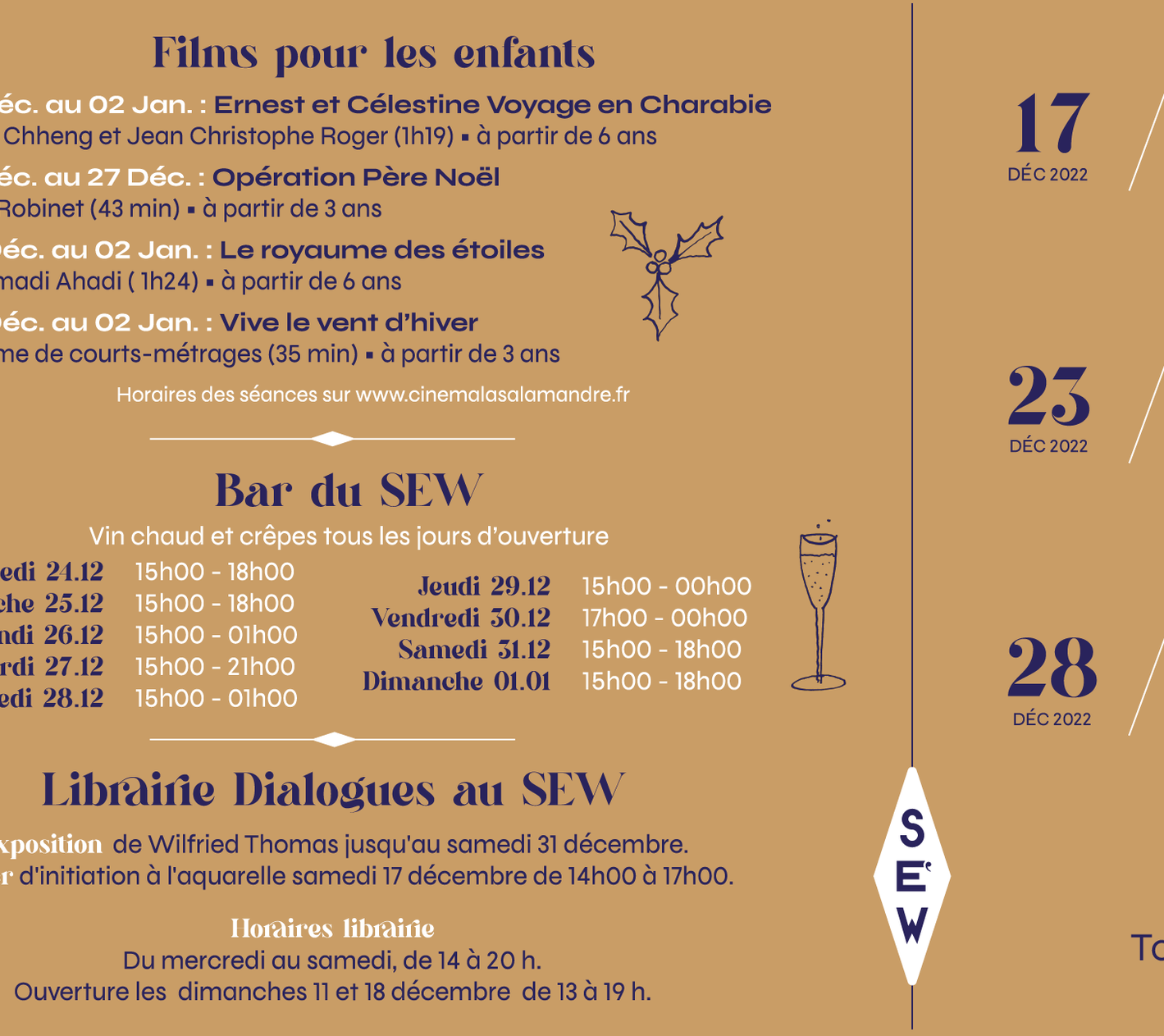 Le SEW reste ouvert pendant les vacances de Noël et vous a concocté un petit programme bien au chaud pour cette fin d’année 2022 🎄