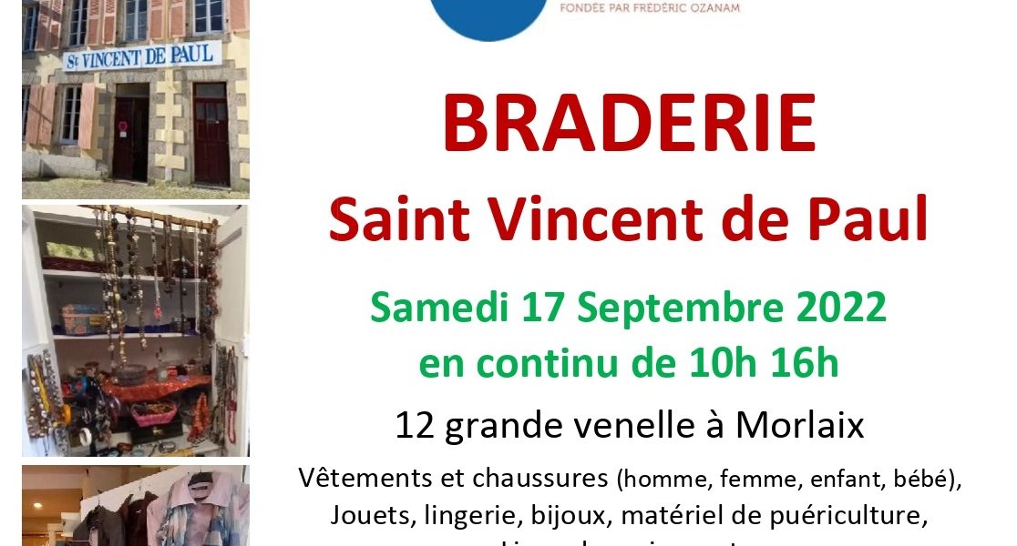 BRADERIE Saint Vincent de PaulSamedi 17 septembre 2022 | MORLAIX Société Saint-Vincent-de-Paul Lire la suite