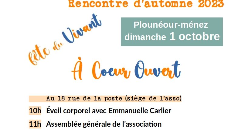 Jeudi 12 octobre 2023 de 14h00 à 17h00 | c/0 Mme KERVOAL