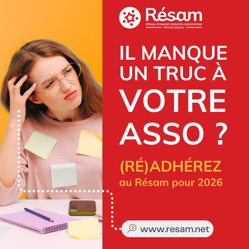 Formations, conseils, bureaux, salles de réunion, matériel évènementiel, soutien au projet associatif... Il y a tellement de bonnes raisons d’adhérer au Résam. Alors faites comme les 236 associations qui ont pris leur adhésion en 2025, (ré)adhérez pour 2026 ;-)