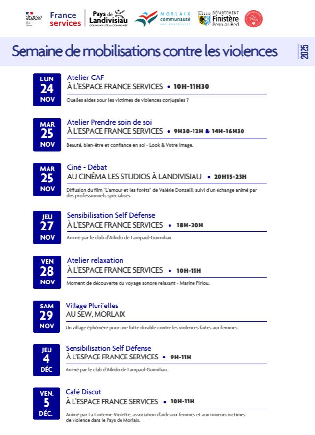 Le samedi 29 novembre, c’est la journée internationale des violences faites aux femmes. Si la lutte contre les violences est menée toute l’année, un bon nombre d’actions sont prévues en Pays de Morlaix cette semaine, notamment par le monde associatif comme à la Friche à Commana ou au SEW à Morlaix.